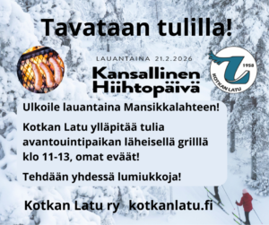 Lauantaina 21.2. vietetään kansallista hiihtopäivää. Suuntaa hiihtolenkin jälkeen kulkusi Mansikkalahteen ja ota eväät mukaan!